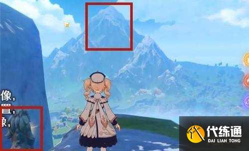 2、第二个机关在前面有个雪山的位置,站到这个石像的前面就可以看到雪山了,点亮左边的那个石像;