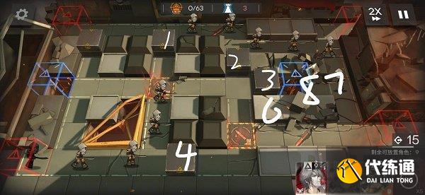 要求只能带洁哥和两个特种,另一个特种最好带快活,给大刀补刀,还可以在老鲤推不动的时候挡一下,放8位置。傀影效果很好,本体守门,影子补刀。洁哥顺带补点输出(开不开都无所谓),准能过