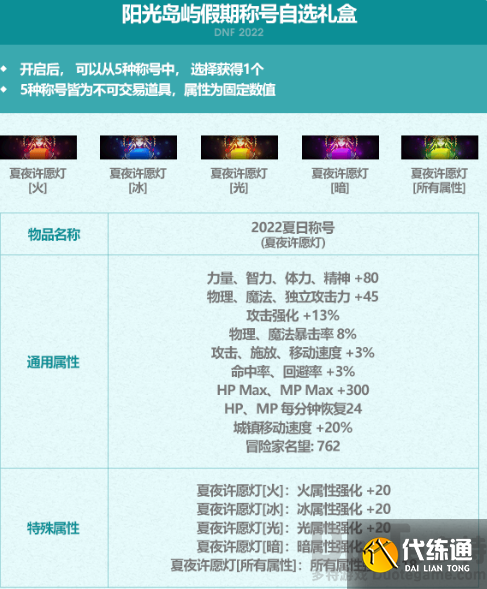 dnf夏日礼包2022称号一览 dnf夏日套2022称号属性及外观