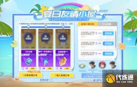 夏日友情小屋,车手召回活动开启啦!6月30日晚间-7月14日,参与任务、使用好友分享的友情口令、被召回好友使用口令都可得到友情币。消耗友情币即可兑换各类奖励。