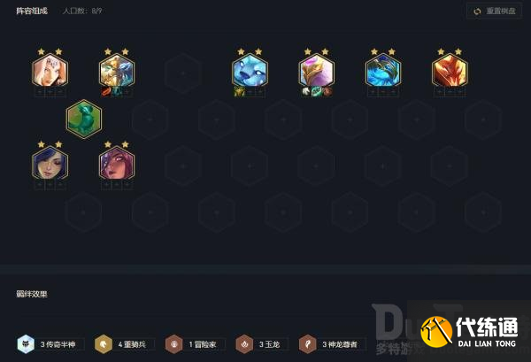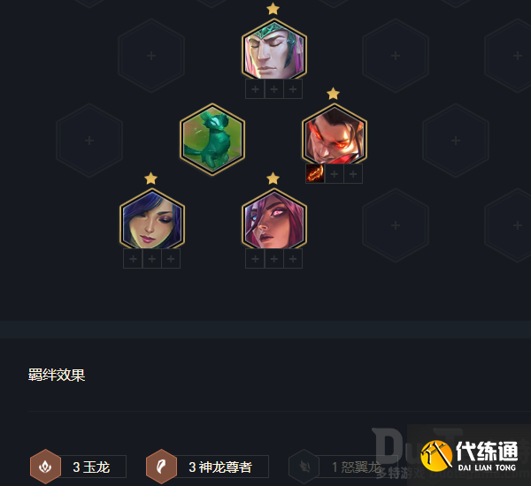 前期用3神龙3玉龙过渡是最完美的,不仅强度不低,且艾希和卡尔玛都能一直用。凑不出也没关系,保持两个前排两个后排的基本原则过渡就行。