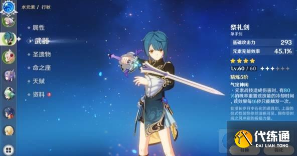 1.武器选择祭礼剑,重置元素战技的被动相当好用,元素充能200%情况下,两次元素战技就能叠满大招。