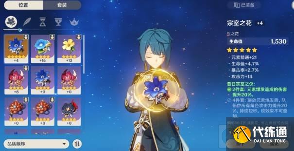 2. 圣遗物选择宗室之仪四件套,两件套增加大招伤害,四件套增加队伍角色攻击力。