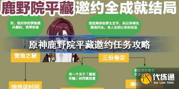 鹿野院平藏是游戏在2.8版本中上线的一位新角色,那么这位角色对应的邀约任务该怎么做呢,下面就一起来看看具体的攻略分享吧,感兴趣的小伙伴千万不要错过哦。