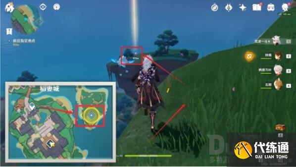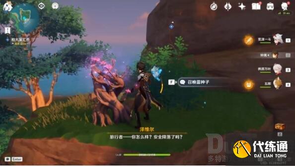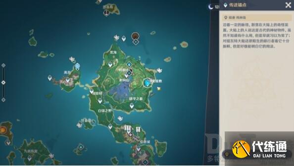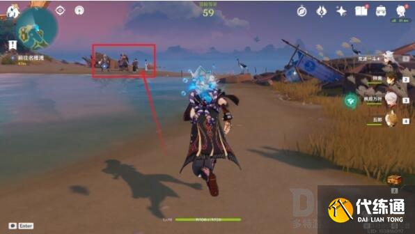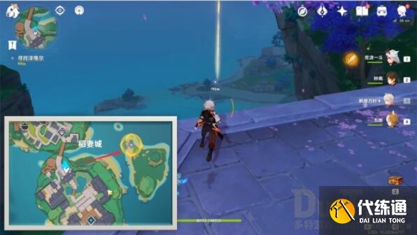 来到天守阁前的传送锚点处,泽维尔在右侧的岛屿岸边,靠近后触发对话即可