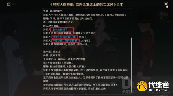 ※注意:重点关注异邦人的台词中蓝色标记的句子,之后需要选择正确的台词哦