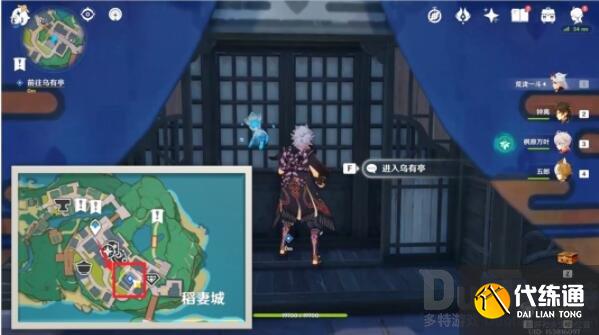 来到稻妻冒险家协会处的传送锚点,前往乌有亭