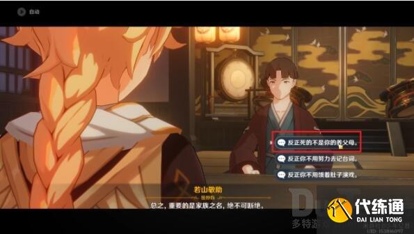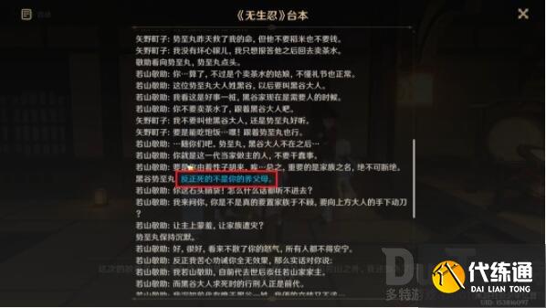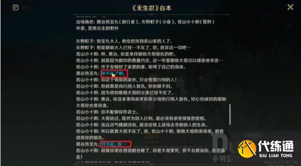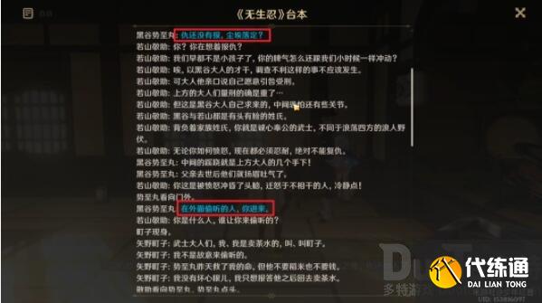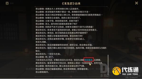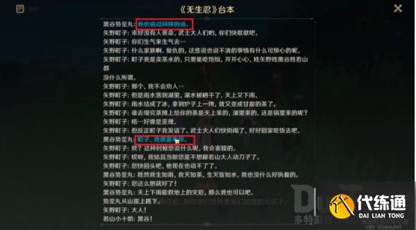 ※注意:重点关注黑谷势至丸的台词中蓝色标记的句子,之后需要选择正确的台词哦