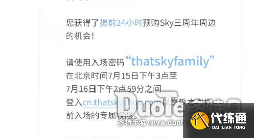 游戏即将开启三周年活动,本次的周年庆购买周边需要一个入场密码,那么这个密码是什么呢,下面就一起来看看相关内容分享吧,感兴趣的小伙伴千万不要错过哦。