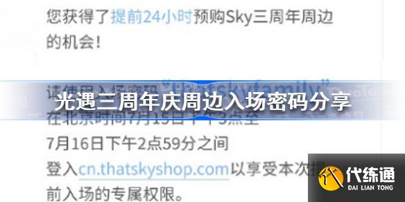 游戏即将开启三周年活动,本次的周年庆购买周边需要一个入场密码,那么这个密码是什么呢,下面就一起来看看相关内容分享吧,感兴趣的小伙伴千万不要错过哦。