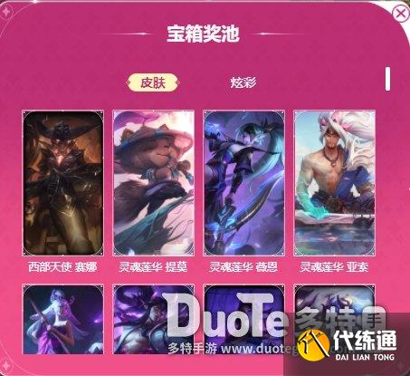 2、以及神龙尊者、kda系列、魔女系列,还有一些角色的单体皮肤,奖励很丰富。