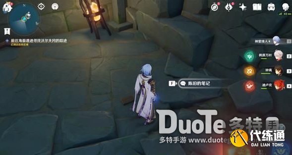 再往前走,击退丘丘人,可以在火炬边找到一个日记