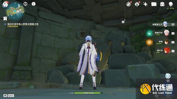 6.宝箱上方的小路 左转又有一个挑战,先打碎罐子下去,然后开元素视野看见假石头,再打碎,这时回头看见水面上方有一个宝箱,等水面上涨之后点击宝箱即可完成挑战