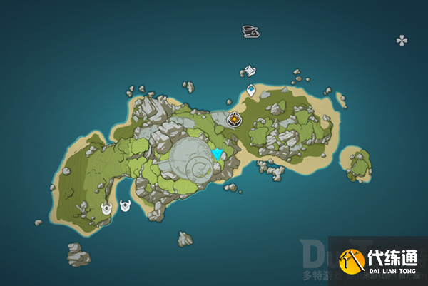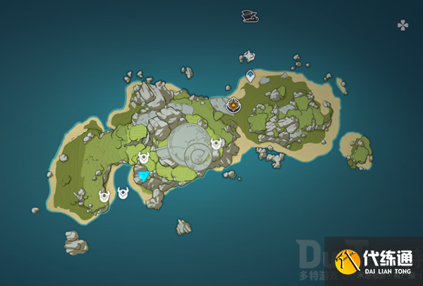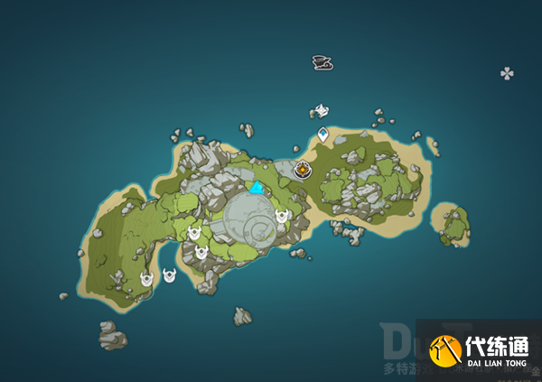 大家探索岛屿的时候应该多少会看到一些所谓“奇怪的图案”(靠近时会有个调查,此时派蒙也会触发语音,这里直接给出四个奇怪图案的位置,建议大家先直接解谜,不用特意去跑下图所示的四个地点,顺序我会给出来的)