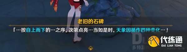 总而言之,结合老旧石碑上面写的谜题,按地势从高到低的顺序解开方碑,所以顺序就是,火方碑-风方碑-冰方碑-水方碑