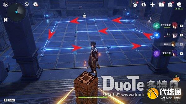 按北,南,西,东的顺序依次踩踏压力板即可(这是拼凑莫娜的命座)