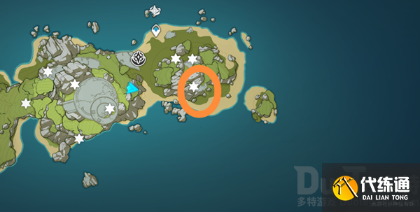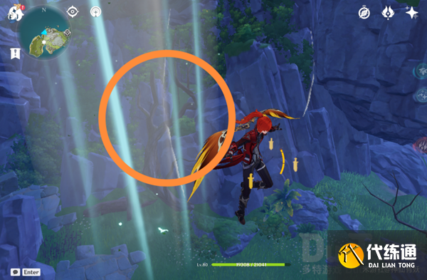 从山顶上往下飞,来到地图这个位置,就可以看到我们第五个凝核了