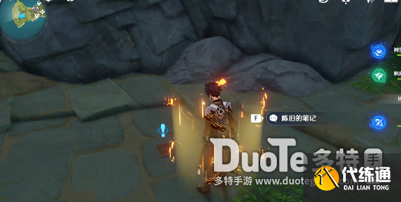 9、往前走,击退丘丘人,在火炬旁边有个日记