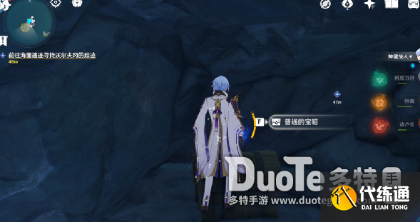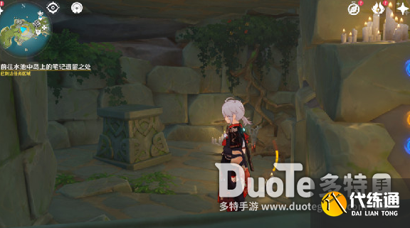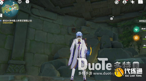 7、宝箱上方的小路 左转又有一个挑战,先打碎罐子下去,然后开元素视野看见假石头,再打碎,这时回头看见水面上方有一个宝箱,等水面上涨之后点击宝箱即可完成挑战