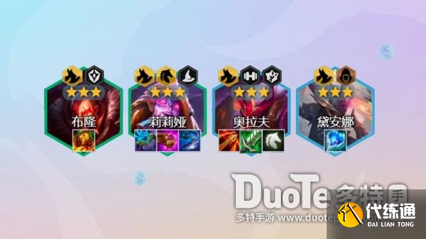 阵容运营:这是一套D卡流阵容思路,一般情况需要在3-2阶段找到全员2星,中后期找到3星阵容体系即可。玩法跟很多2费卡阵容类似,都是属于一套6D3星思路。