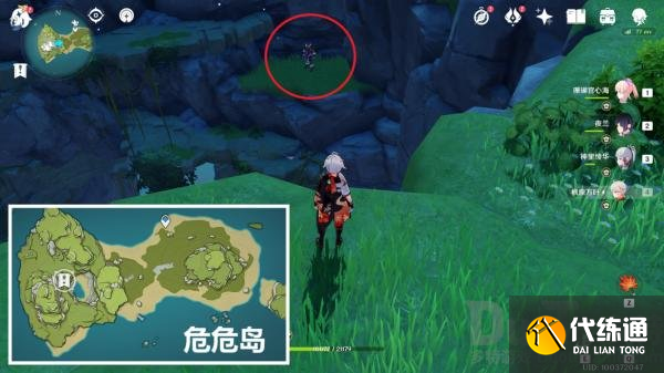 注意,今天的危危岛地形已经改变了,需要通过地图上的水占盘进入,位置如图所示