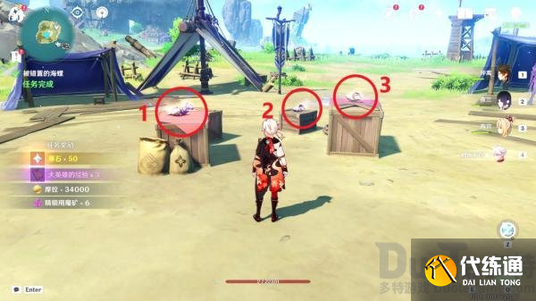 (2)与它们对话,接下来需要收集海螺,我们已经提前收集好了,可以直接做任务