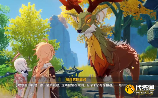 2、在到达所示位置之后会自动进入剧情,开始与削月筑阳真君对话。