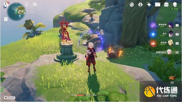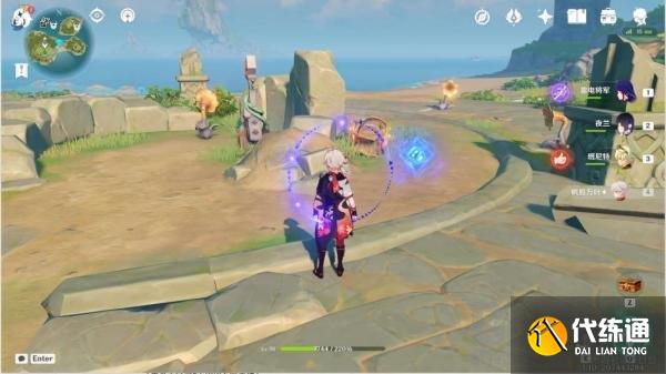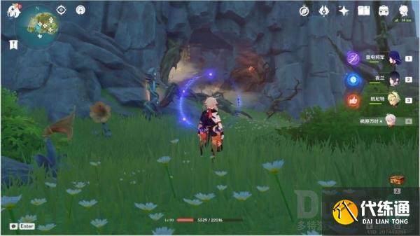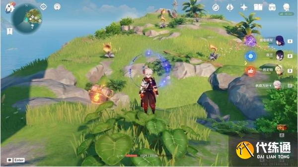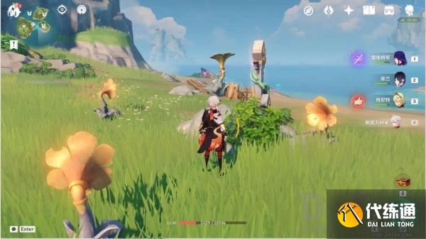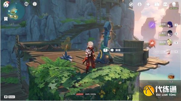 清理平台上的丘丘人,解密音奏踏板解锁音奏树琴,调整音律花的朝向后演奏音奏树琴,解锁礁石上的宝箱一