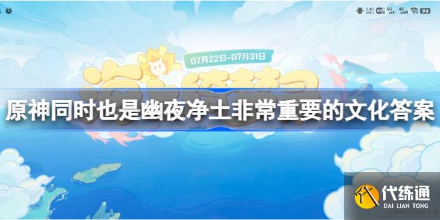原神活动中有一道题问幽夜净土非常重要的文化是什么,下面小编为大家带来原神同时也是幽夜净土非常重要的文化答案,感兴趣的小伙伴一起了解一下吧。