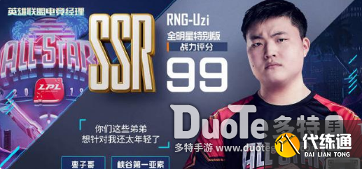 英雄联盟电竞经理最强选手是谁 英雄联盟电竞经理Uzi全明星特别版评分是多少
