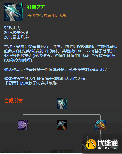 2、出装思路:之所以出利刃,是因为利刃可以减少W的CD,这套在释放大招的时候,移速可以直接飙升的600多,而且E技能可以持续保持大招的时间。在对面坦克特别多的情况下,狂风可以替换成海妖。