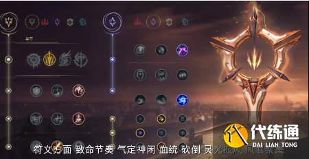 3、符文选择:致命节奏、气定神闲、血统、砍倒、灵光披风、风暴聚集