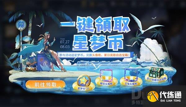 其中获得的星梦币可前往【夏日好礼】活动中兑换夏日英雄自选宝箱、荣耀播报、个性动作等奖励;