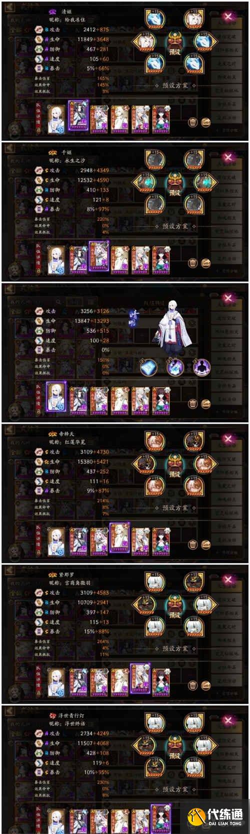 千姬插完锤子后切普攻,帝释天2技能后无火则普攻,有火则切妖术清小怪;晴明灭星交替,其余单位全程妖术