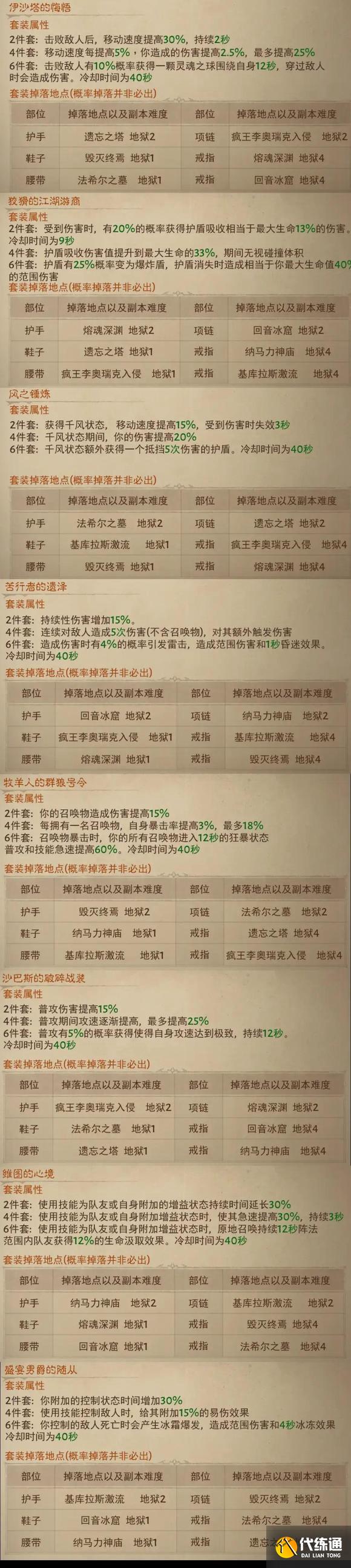 绿色装备是有着套装属性的装备,玩家可以在游戏内查看掉落方式。