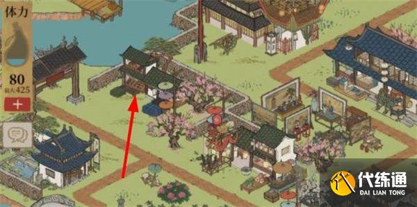 3、位置:在桃花村村口牌坊后面的第一家店铺就是桃花村光记瓦铺,在桃花村河流的拐角处,旁边还有三个颜色的纸伞。在瓦铺的上方有一大片油菜花田,玩家可以根据这个参照物来寻找。