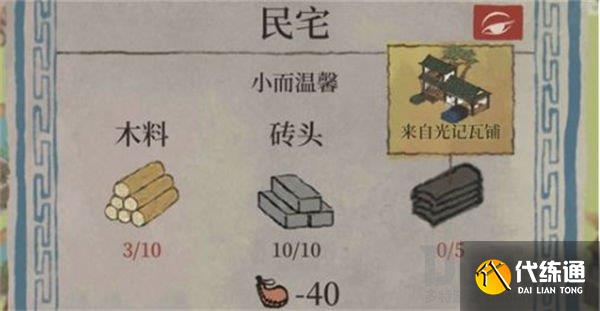 4、建筑:玩家可以使用10个木材,10个砖头和5个瓦片制作民宅。