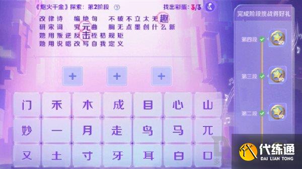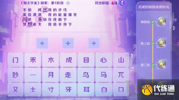 ② 每段歌词设有3~4个文字彩蛋,拼组成功该段落所有彩蛋文字,即通过该关卡。
