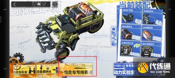 2、在这里装配完小车的配置以后,点击自走车专用赛道。