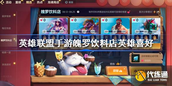 魄罗饮料店是英雄联盟手游近期上线的一个新活动,在这个活动中玩家们能够通过赠送饮料的方式来增加好感度。下面就一起来看看具体的英雄喜好分享吧,感兴趣的小伙伴千万不要错过哦。