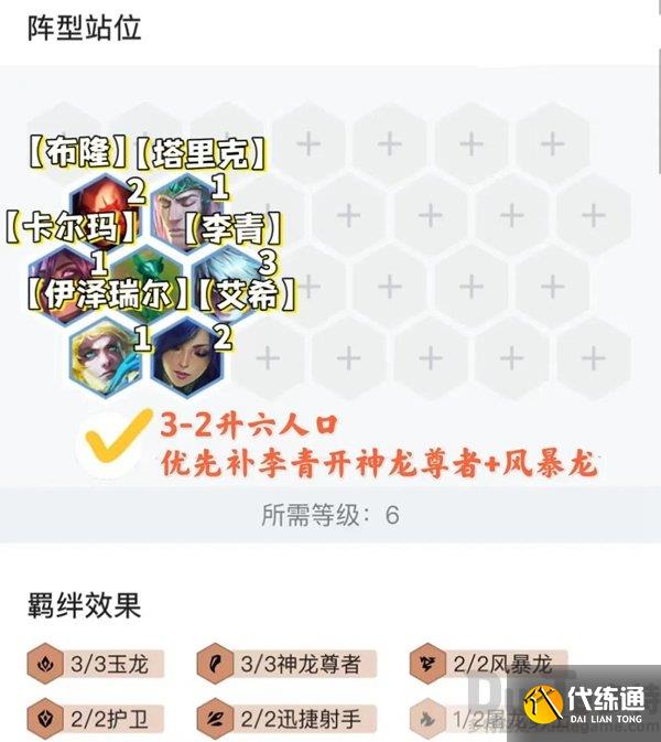 3-2升六人口,优先补李青开神龙尊者+风暴龙
