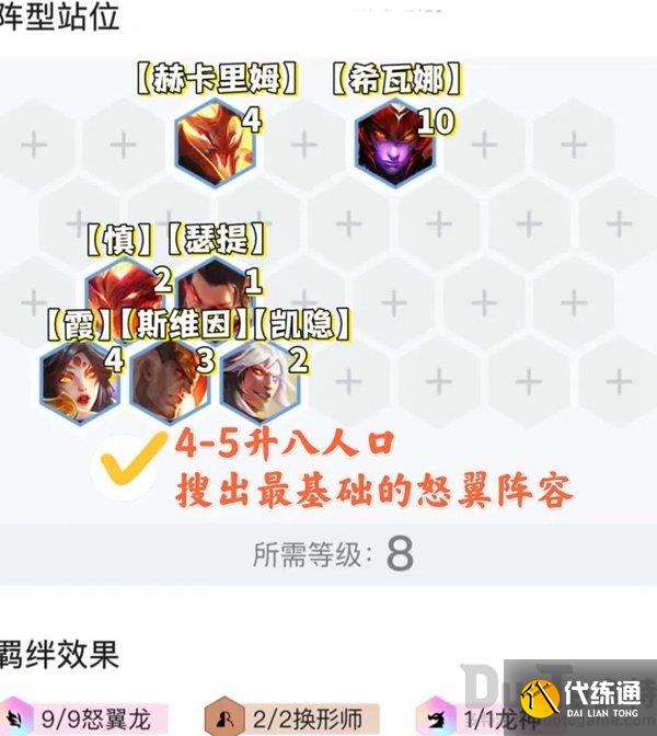 阵容羁绊:9怒翼龙3神龙尊者2狂刃2换形