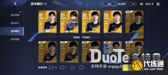 然后在阵容调整中,将你想要下阵的选手替换掉即可,随后进入解约界面就能顺利解约该选手了!