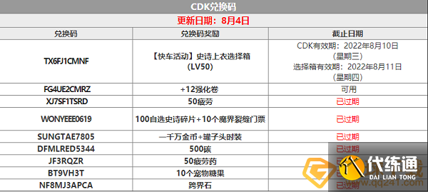 8月最新兑换码: