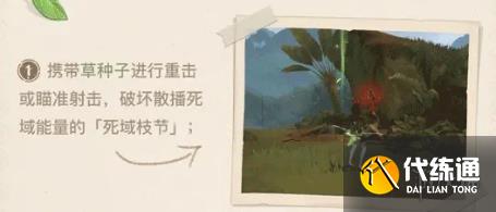 ①携带草种子进行重击或瞄准射击,破坏散播死域能量的「死域枝节」;