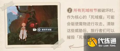 ②所有死域枝节被破坏时,作为核心的「死域瘤」可能会驱使魔物进行攻击。清除这些威胁后,旅行者们可以摧毁「死域瘤」