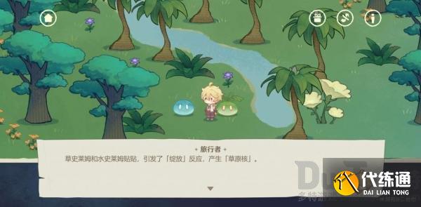 跟随纸飞机的指引,前往与草水史莱姆互动