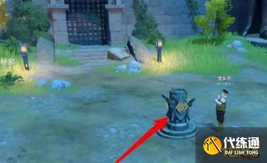 1、铁门在渌华池的两座大石像那里,想要打开铁门首先我们去渌华池右边的传送锚点处,在这附近可以找到画笔。
