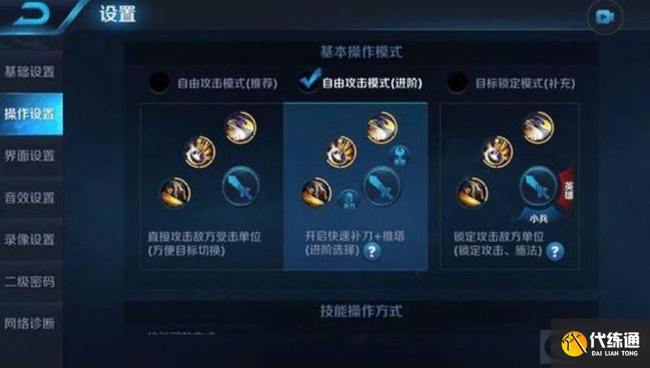 推荐:自由攻击模式(进阶),也就是补刀、推塔键建议使用补刀推塔键。