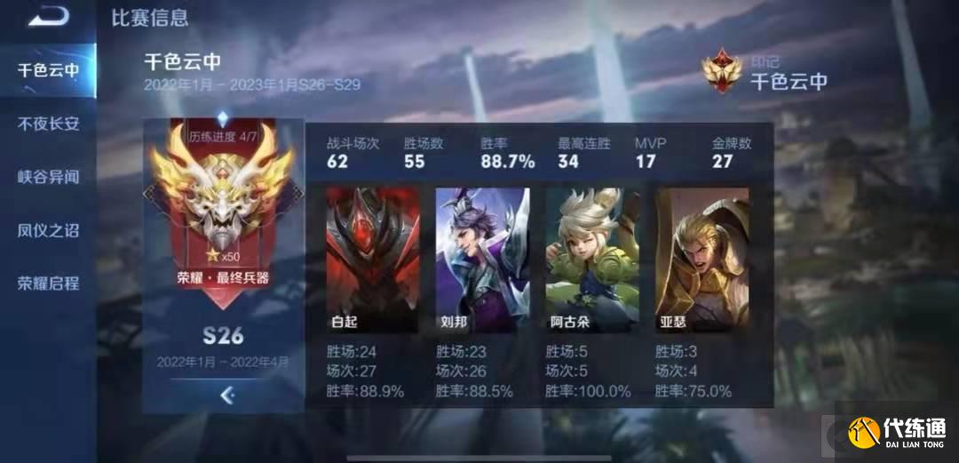 1、使用最多的英雄的英雄排位胜率超过60%。
